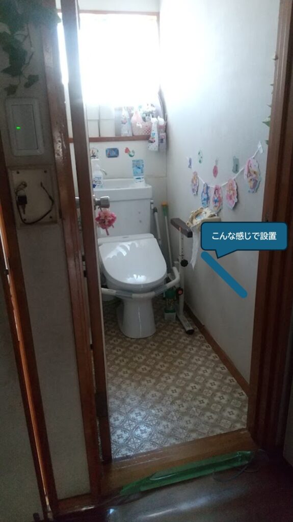 トイレの便座に座るときと、便座から立ち上がるときに入り口近くに手摺りがあるとよいのではないか、という提案がありました。