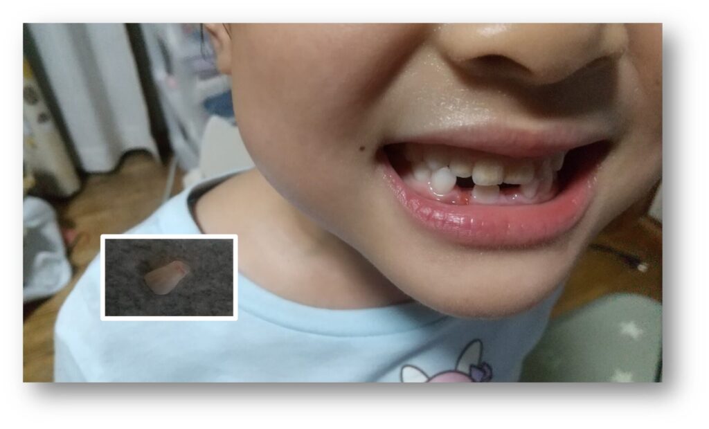歯が抜けたことがとてもうれしい様子です。