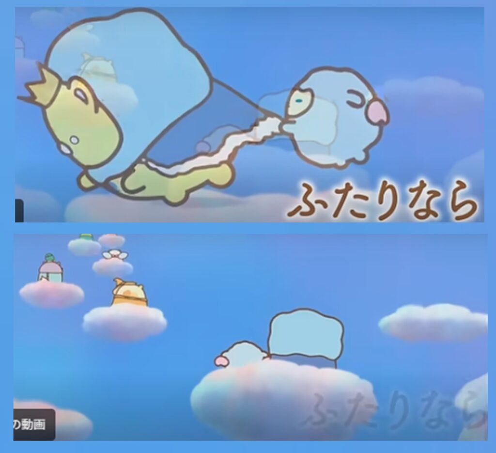水不足を解決するヒントが「みずのしんでん」にあることを知り、すみっコ達も加わって、雲の上の大冒険に出発!