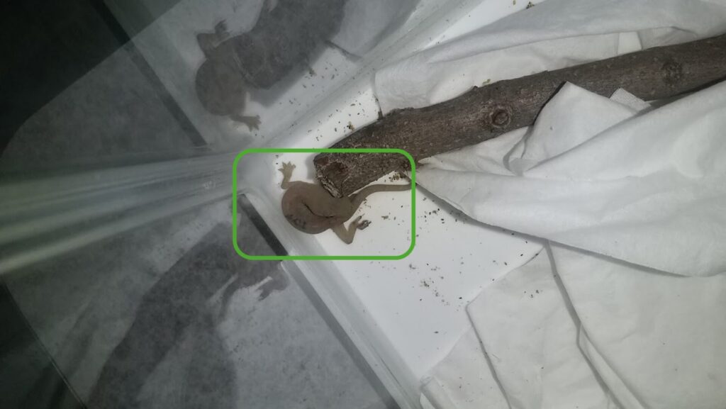 Mikoとママがそのヤモリを捕まえて、保護をしていました。