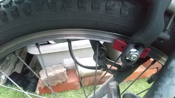 そしてリムがアルミ製の場合、リム自体も削れて薄くなってきます。